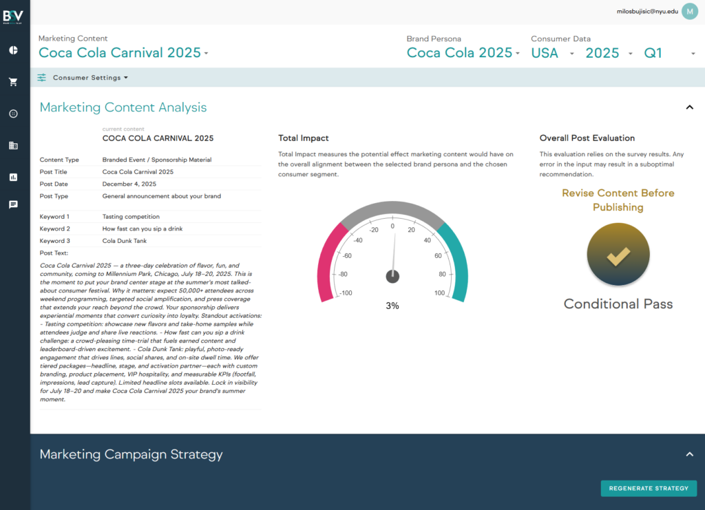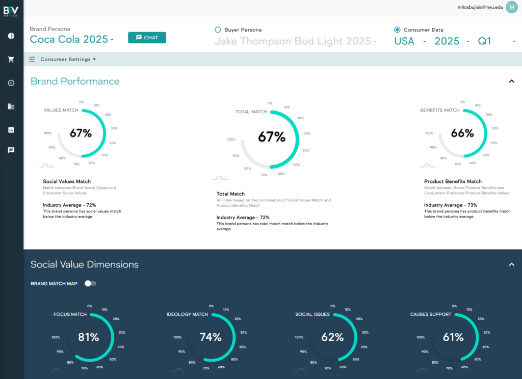 Brand Social Value (BSV) is designed to help brands understand who they are, who they serve, and how their marketing will be perceived before it goes live. This guide walks you through the full BSV workflow—from your first login to testing real marketing campaigns.